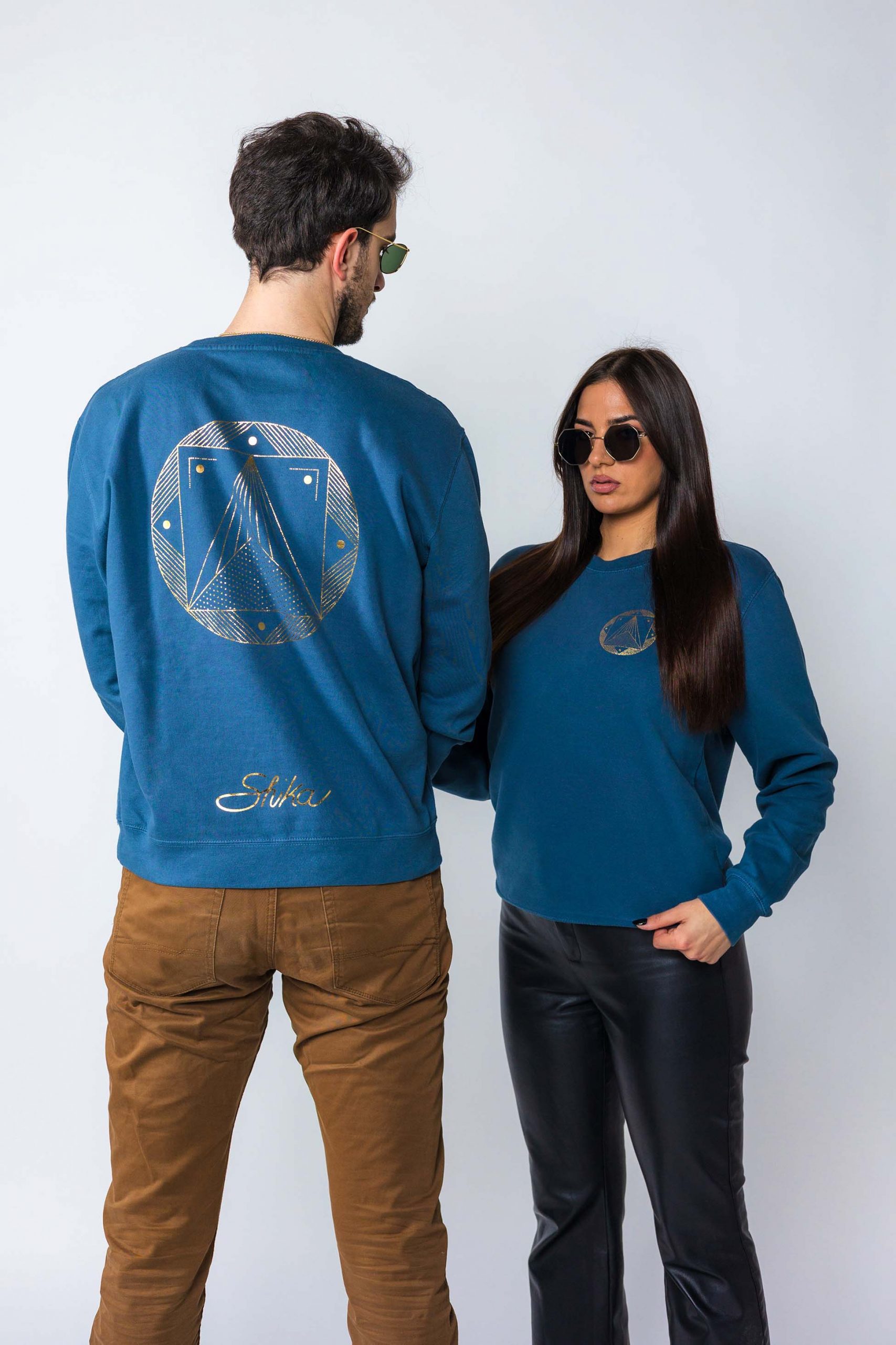 Unisex Blue Mixture of Fibres Sweatshirt Golden Geometry